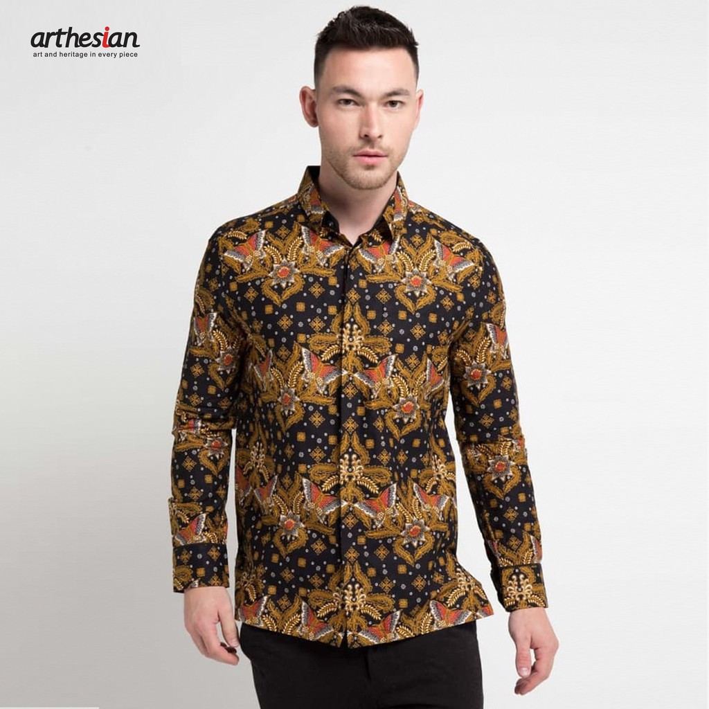 Kemeja batik pria dengan cutting modern fit. Batik Arthesian menggunakan bahan katun yang adem dan berkualitas tinggi. Cocok digunakan di acara formal maupun casual karena motifnya yang unik dan menarik.