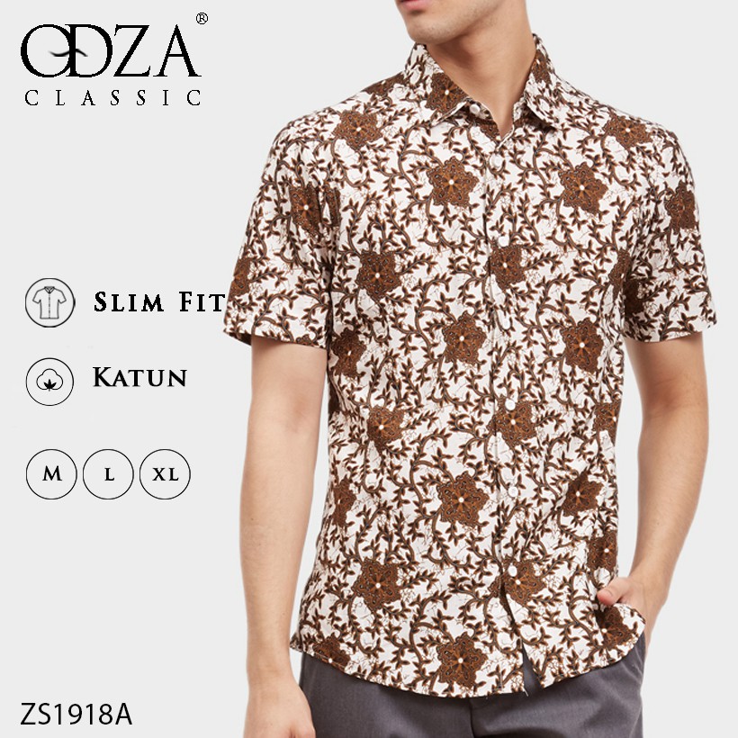 Odza Batik Solo Modern Pria Lengan Pendek Slim Fit Anjana