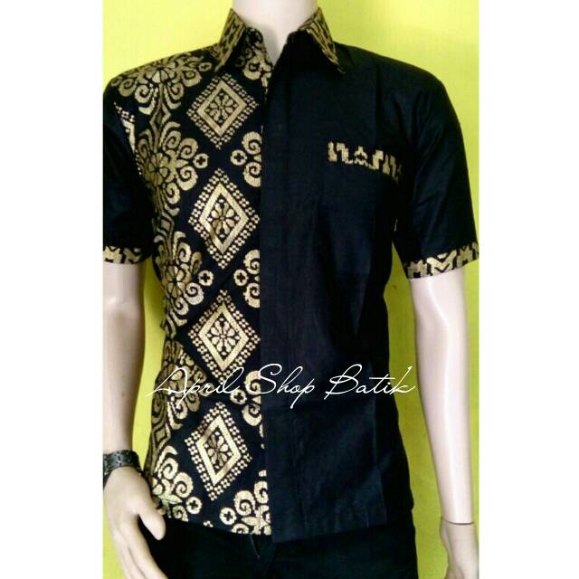Baju hem batik pria motif prada kombinasi
