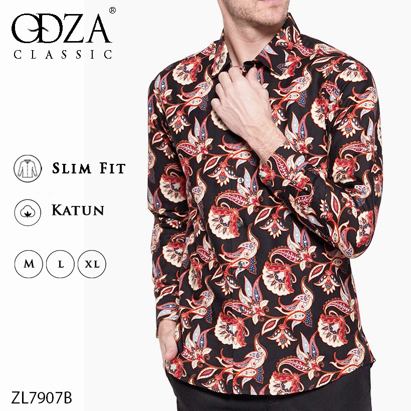 Odza Batik Slimfit Pria Lengan Panjang Modern Hem Saniva