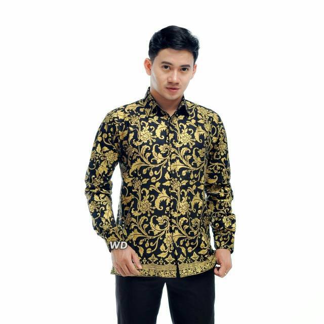 Toko Grosir Pakaian W di Kabupaten Tanah Bumbu Kemeja Batik Prada Melati Hitam Lengan Panjang Big Size Fit Xxl Ld 120 Cm/seragam Batik Keluarga dari Tidak Ada Merek Kota Pekalongan