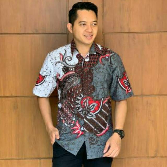 Agen Pakaian di Kabupaten Kapuas [best Seller] Kemeja Batik Pria Lengan Pendek Katun Hem Printing Cap Lengan Pendek Wahana [abu] dari Baladewa Batik Kota Surabaya